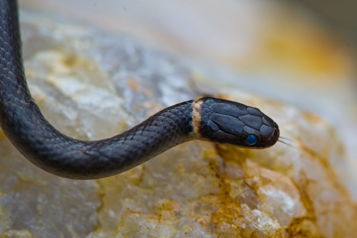 Thankfully, my snake adventures of late have been with friendlier types, such as this Northern Ringneck snake. I first caught him on Saturday while we were doing some yard work. This morning, Cam found him again sunning himself in the driveway, and we decided to take some photos before we put him back under the planter he calls home. While I’m more careful now with the snakes I meet, they still intrigue me and I enjoy knowing at least some creatures out there appreciate my gardening.